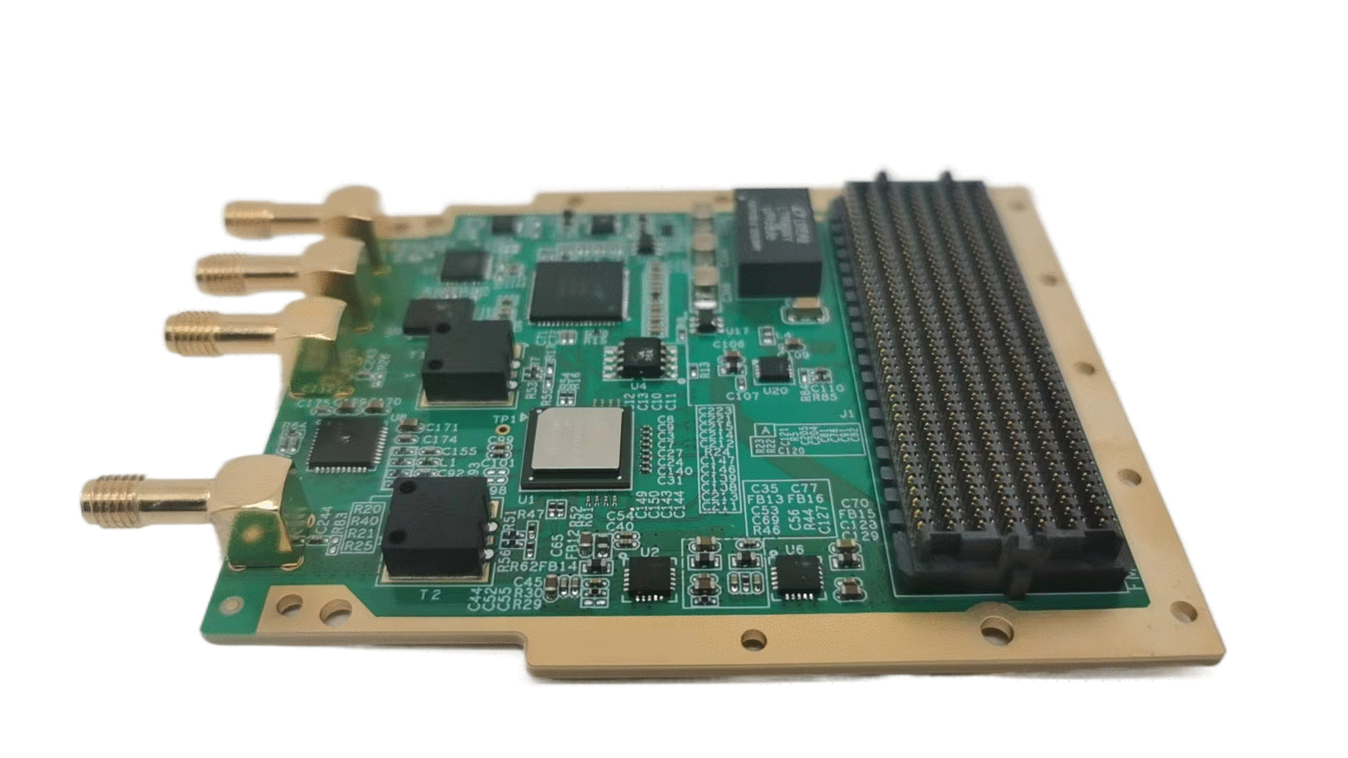 FMC200子卡集成双通道5.2Gsps采样率或单通道10.4Gsps采样率AD。板载时钟芯片LMK04828和LMX2594,可以提供JESD204C所需要的各种时钟。具有同步/触发功能,模拟信号采用SSMA射频连接器输入和输出。标准FMC+子卡,符合VITA57.4规范。板卡可广泛应用于通信,雷达,仪表和自动测试设备,工业自动化等领域。