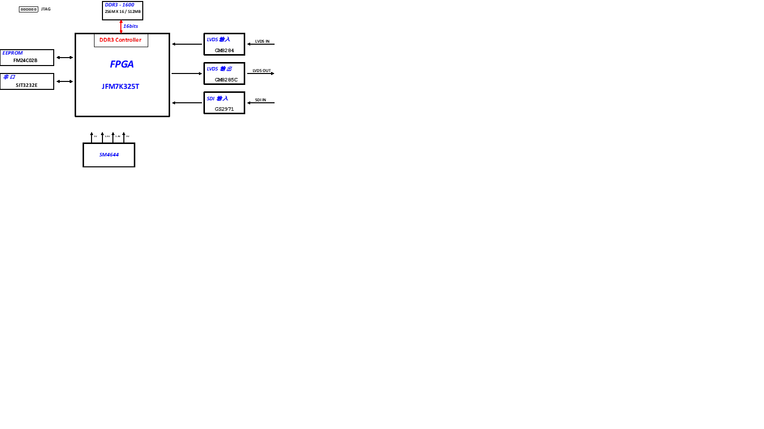 主要功能是实现对1路SDI输入视频信号进行缩放后,叠加到一路计算机输出的LVDS的输入视频中,并通过一路LVDS输出视频接口显示叠加后的视频。同时能通过串口接收主机的控制命令,移动子画面在背景画面中的位置。