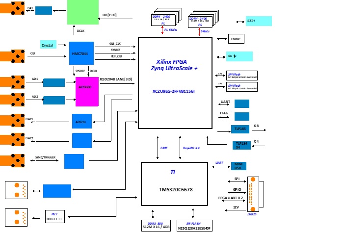 * ADC: ADC型号AD980,ADC位数:14Bit,采样率1Gsps。