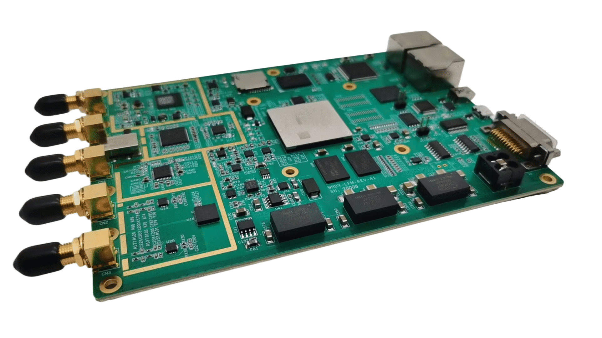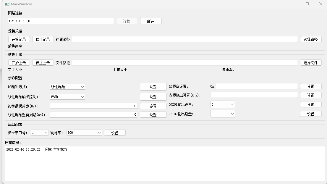 KH919是一款基于XILINX ZYNQ系列,芯片型号为XC7Z035-2FFG676I的一款数据采集卡。该板卡集成了2个AD和1个DA。可以通过软件界面设置DA工作在点频模式还是线性调频模式。点频和线性调频的参数可以通过操作界面进行设置。能实现基带线性调频信号生成。多源传感器数据读取封包与传输功能。