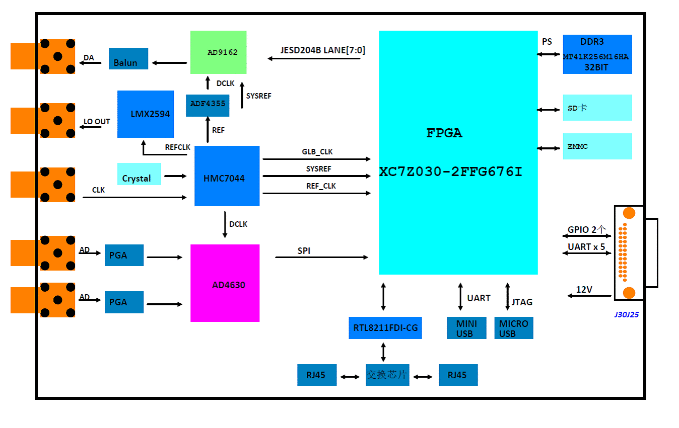 ☆时钟芯片型号:LMX2594,ADF4355,HMC7044。